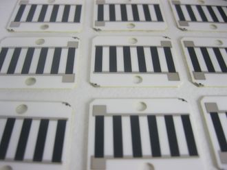 Конструктивно основой нагревателя служит керамическая заготовка оксида алюминия,на которой по толстоплёночной технологии методом трафаретной печатью поэтапно наносятся проводящий и резистивный слои.В связи с тем,что нагревательный слой располагается непосредственно на керамической поверхности теплопередача максимально эффективная.Толщина проводящих слоёв составляет 8..70 мкм,что определяется величиной протекающего тока согласно технического задания на разработку.Сопротивление нагревателя можно получить в достаточно широких пределах от единиц Ом до десятков кОм.